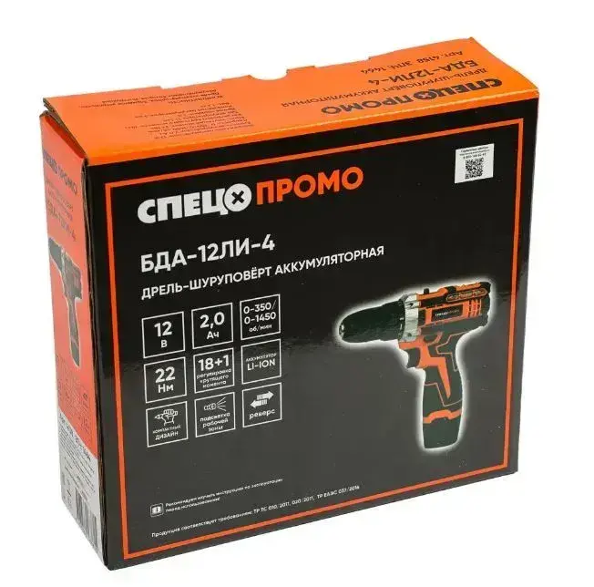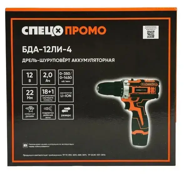 Дрель аккумуляторная СПЕЦ БДА-12Ли-4 (22Нм, 1АКБ х 2Ач)