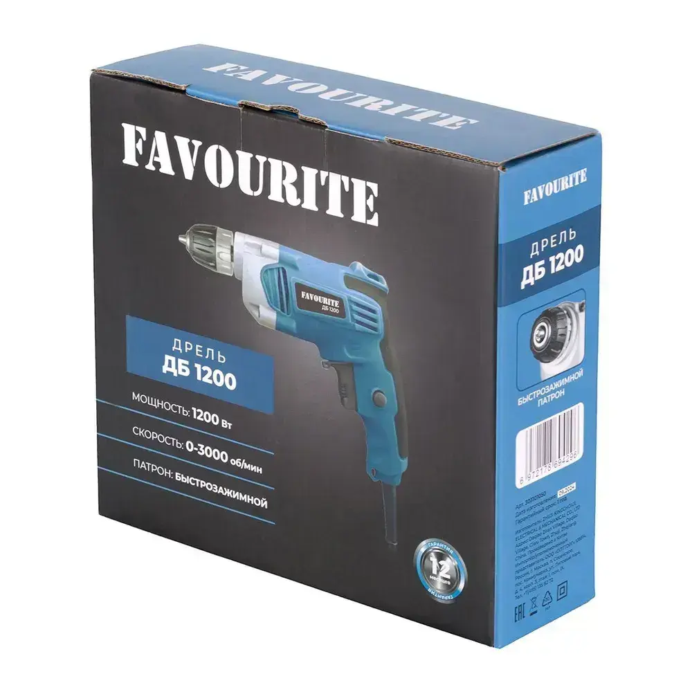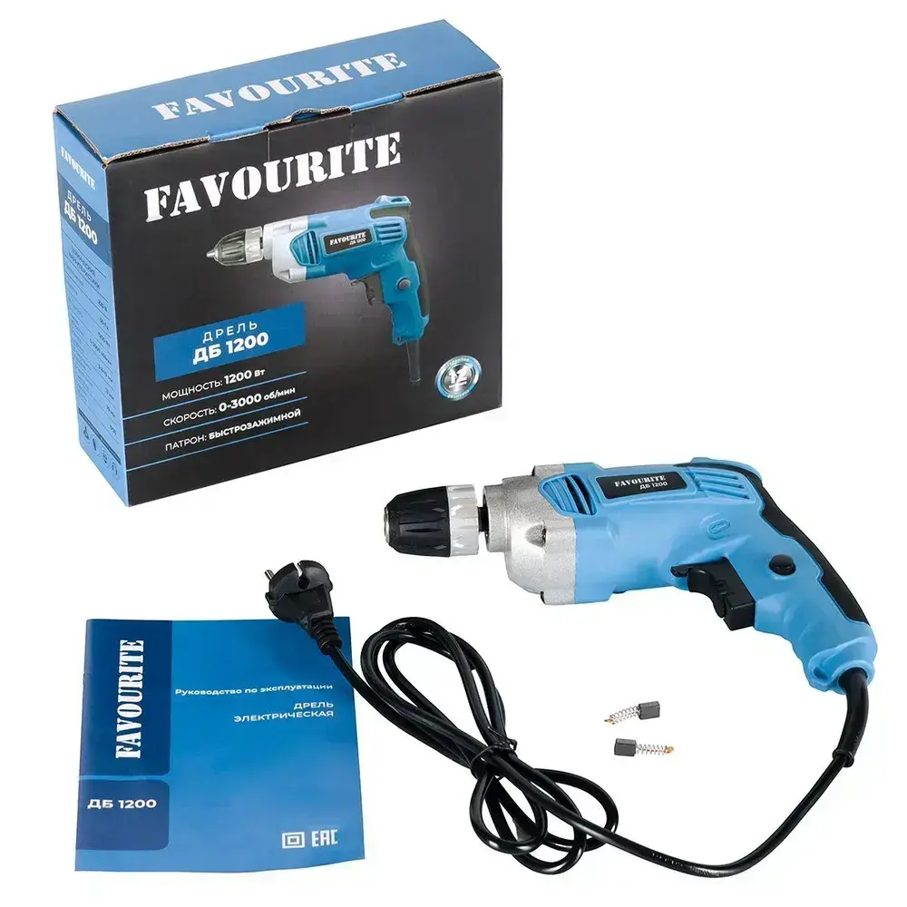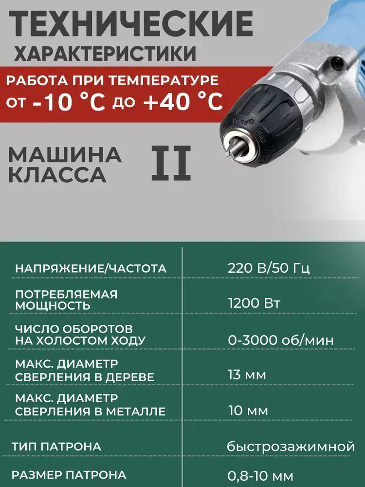 Дрель электрическая от сети, 1200 Вт, регулировка оборотов 0-3000 об/мин, БЗП 0.8-10 мм, 10/13 мм