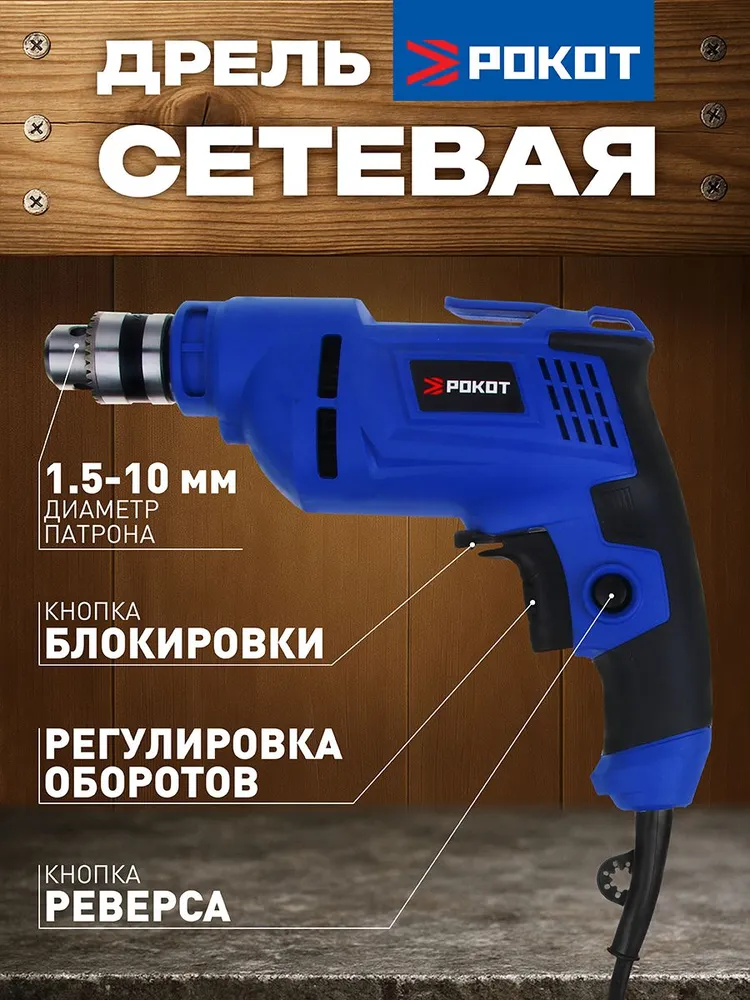 Дрель электрическая сетевая 650 Вт, РОКОТ