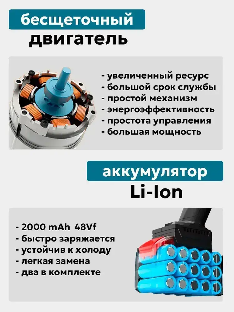 Дрель-шуруповерт 18v бесщеточный, 45 Нм, с набором и 2 АКБ