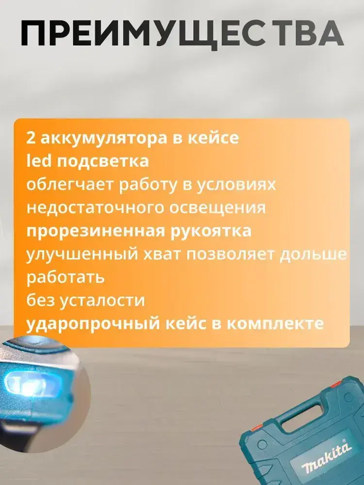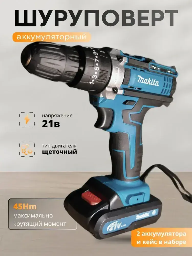 Дрель-шуруповерт, 21 В, 50 Нм, 2 АКБ