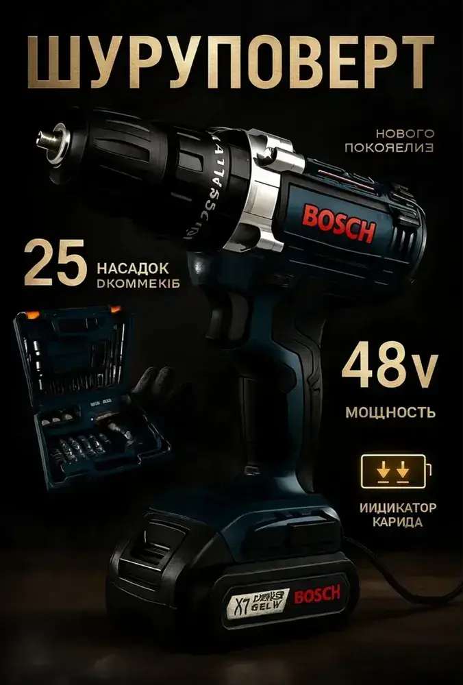 Дрель-шуруповерт, 48 В, 2 АКБ