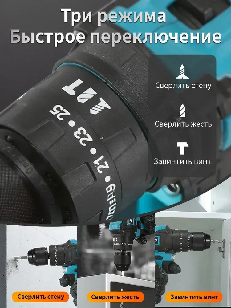 Дрель шуруповерт аккумуляторная 21 В, 2.0 Ач, быстрозажимной патрон 3/8", 25+3 режима, 24 сверла в комплекте