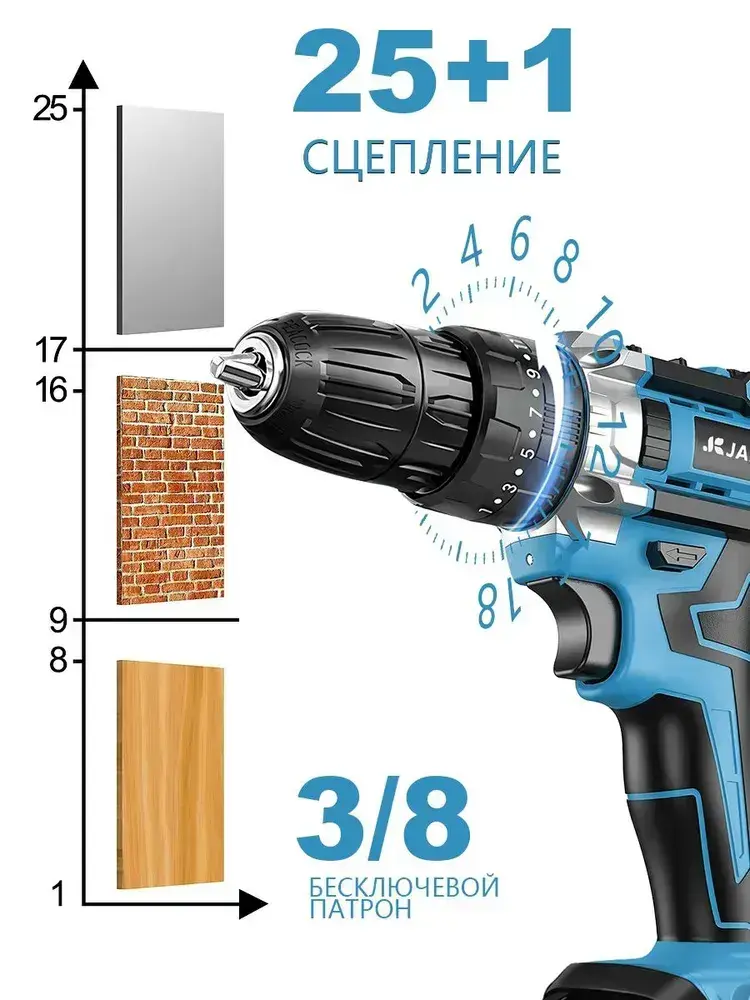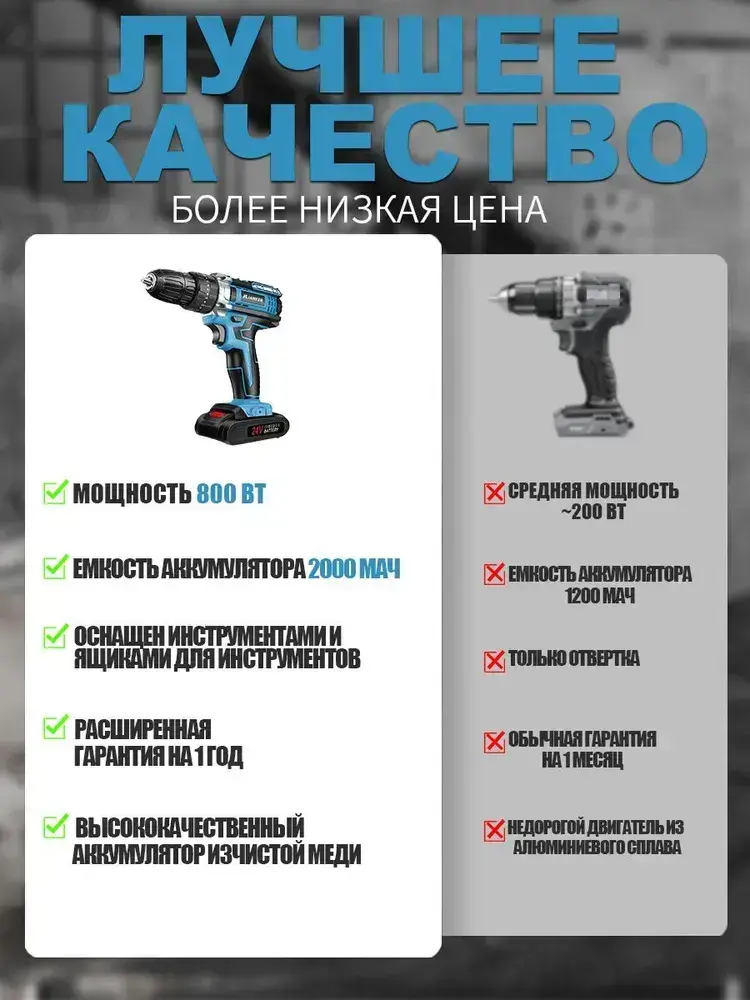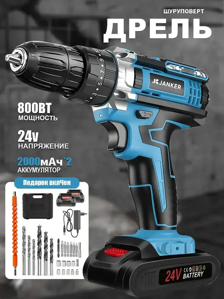 Дрель шуруповерт аккумуляторная 24 В,шуруповерт аккумуляторный бесщеточный,2000мaн,2 АКБ,синий