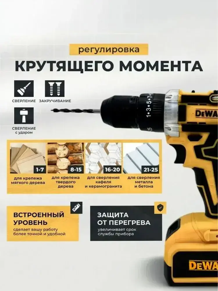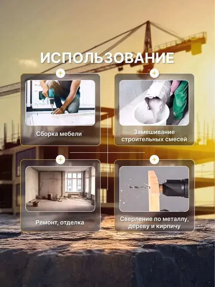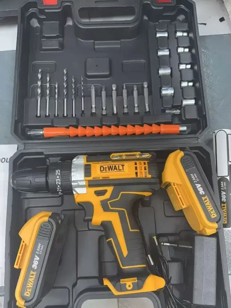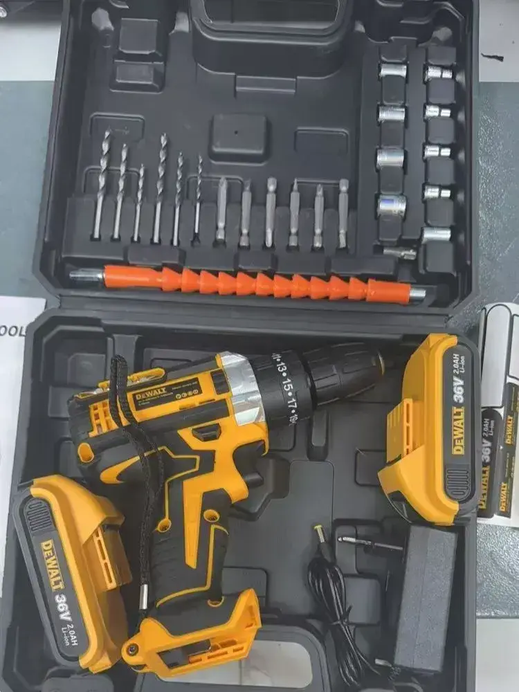 Дрель-шуруповерт аккумуляторная 36В, 2 АКБ,и 24 насадки, с кейсом + набор бит и свёрл