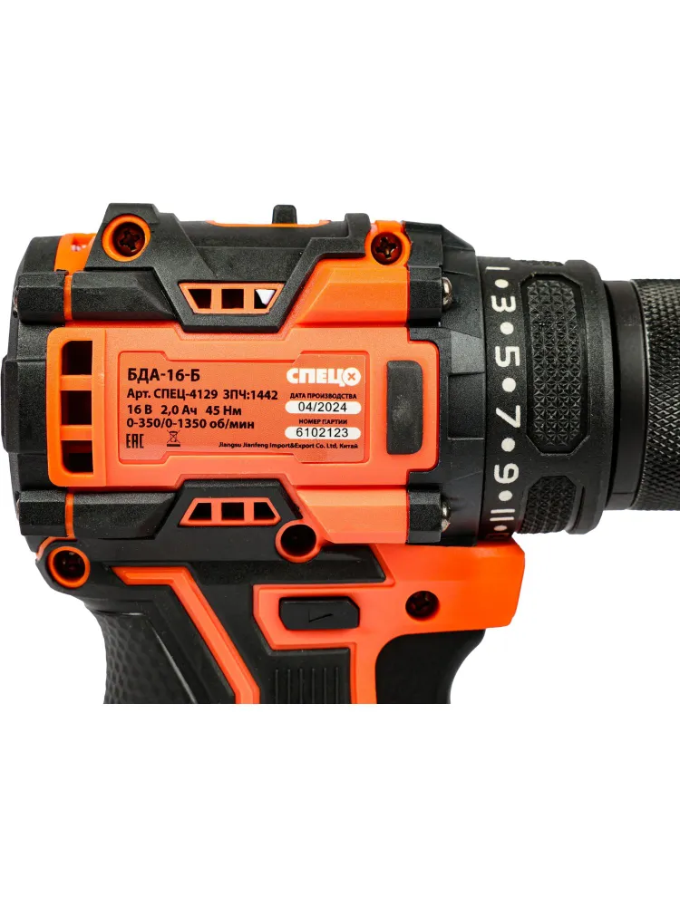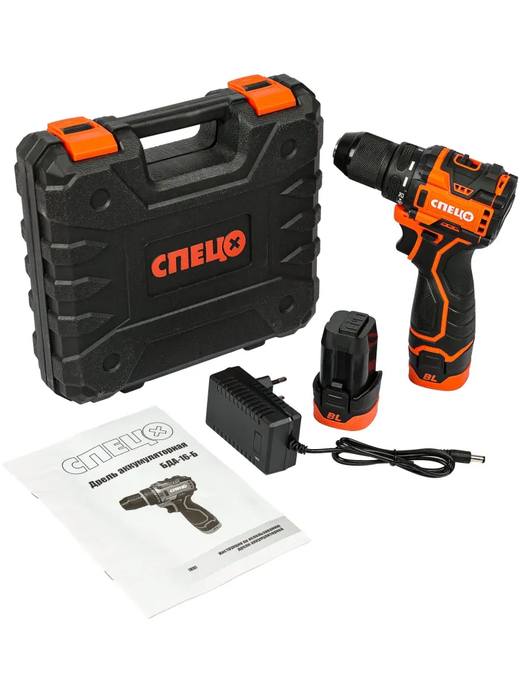 Дрель-шуруповерт аккумуляторная бесщеточная Спец БДА-16-Б, 16 В Li-Ion 2x2 Ач