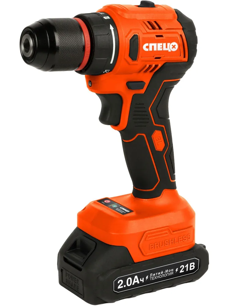 Дрель-шуруповерт аккумуляторная бесщеточная Спец БДА-21-Б, 21 В Li-ion 2x2 Ач