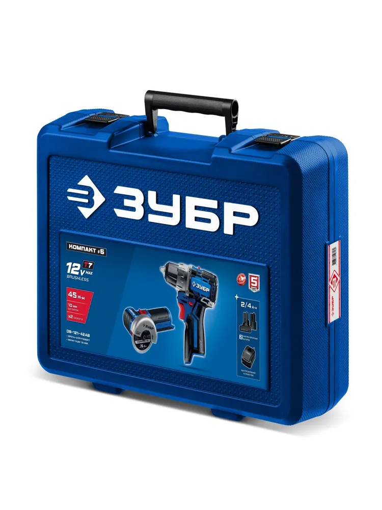 Дрель шуруповерт аккумуляторная + болгарка мини КОМПАКТ #5, BRUSHLESS, 12 В, 45 Н м, 2 АКБ тип Т7, кейс, ЗУБР Профессионал