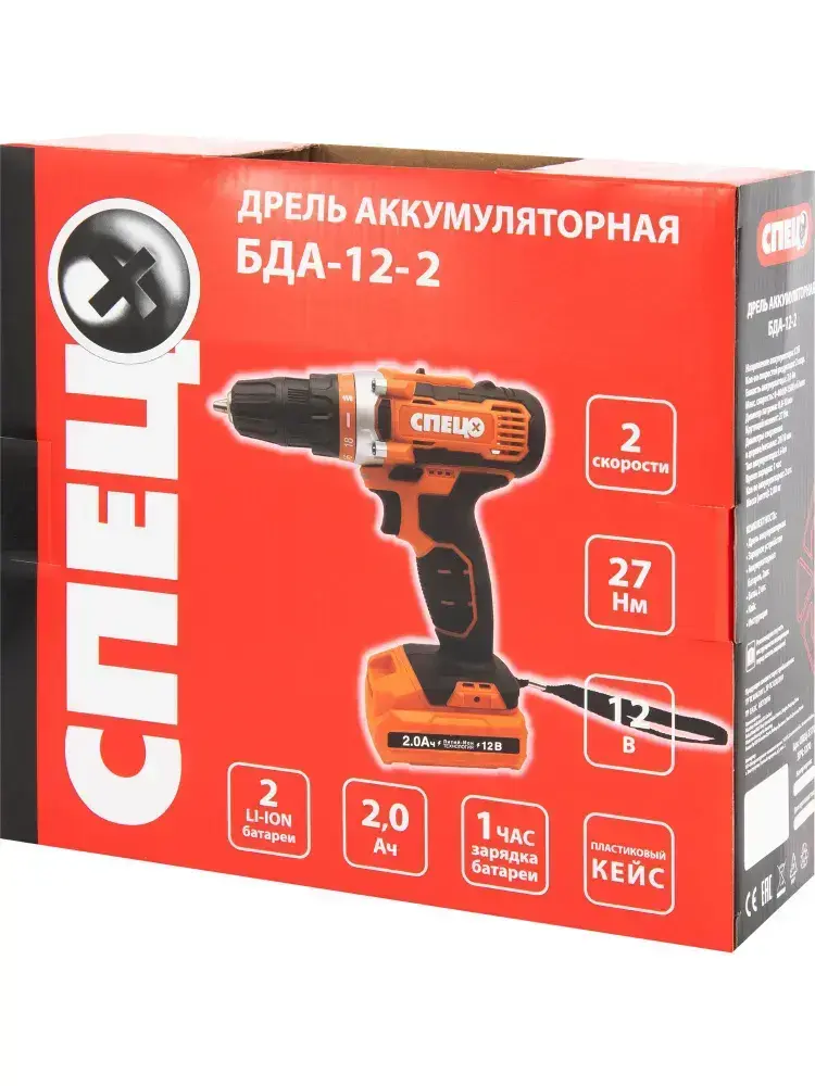 Дрель-шуруповерт аккумуляторная Спец БДА-12-2, 12 В Li-Ion 2x2 Ач