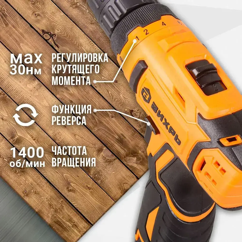 Дрель-шуруповерт аккумуляторный 12В, 30Н*м, 2Ач, Вихрь
