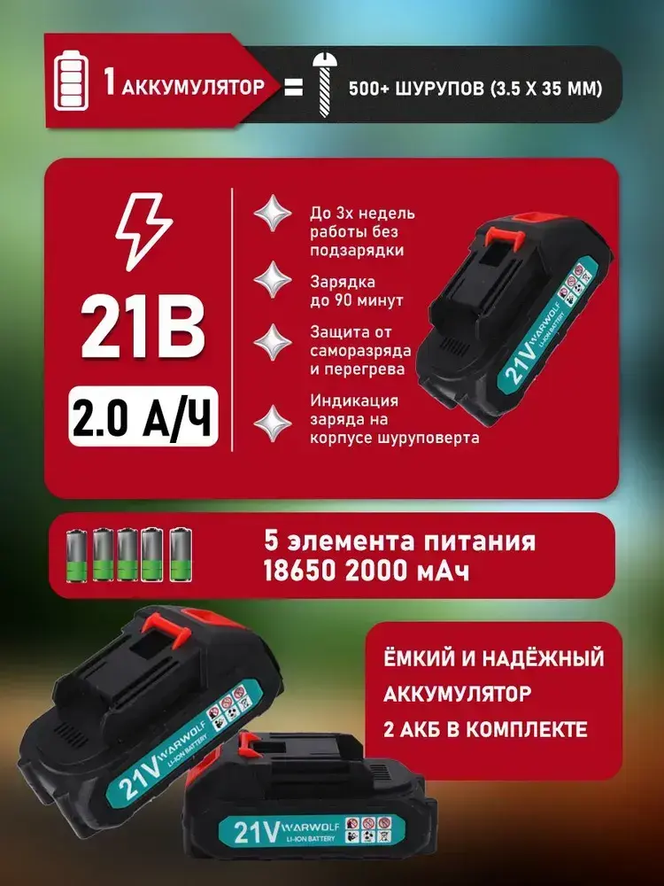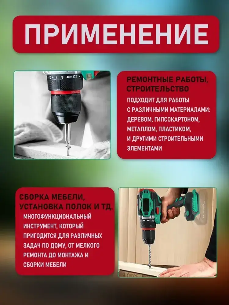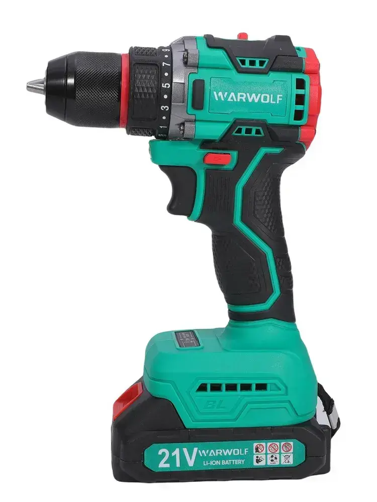 Дрель-шуруповерт аккумуляторный бесщеточный 21В, в кейсе, 2 АКБ 2.0 а/ч, многофункциональный 80 H/M для долбления, сверления, закручивания