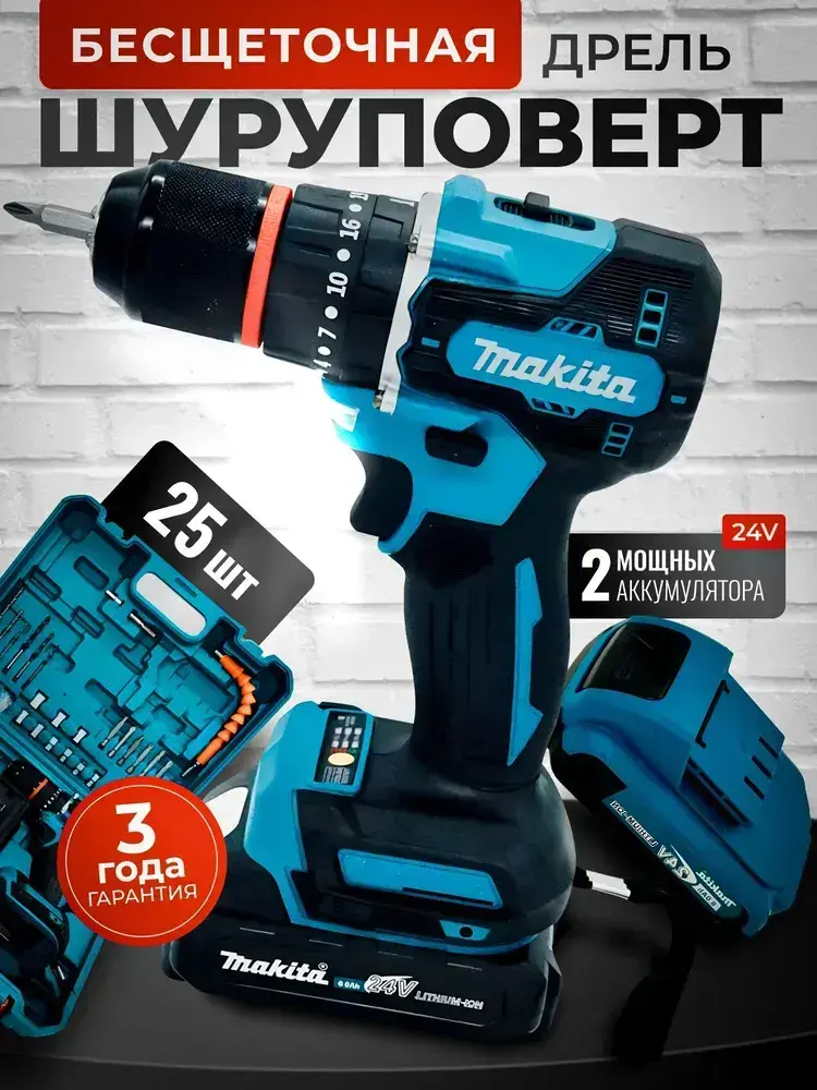 Дрель шуруповерт аккумуляторный, бесщеточный 24В