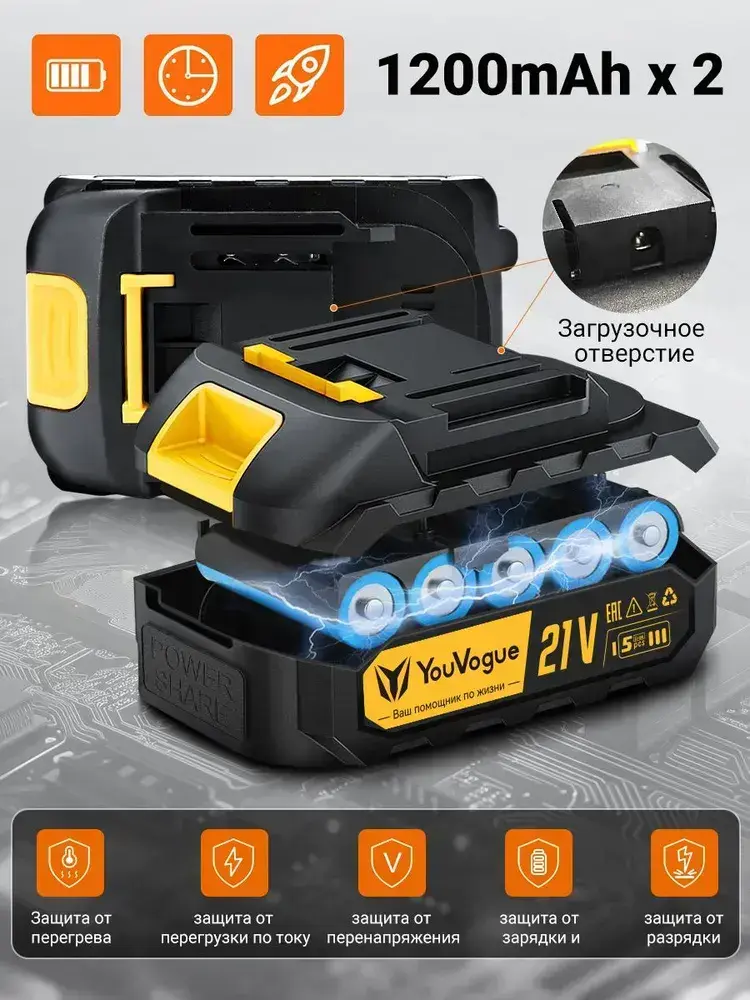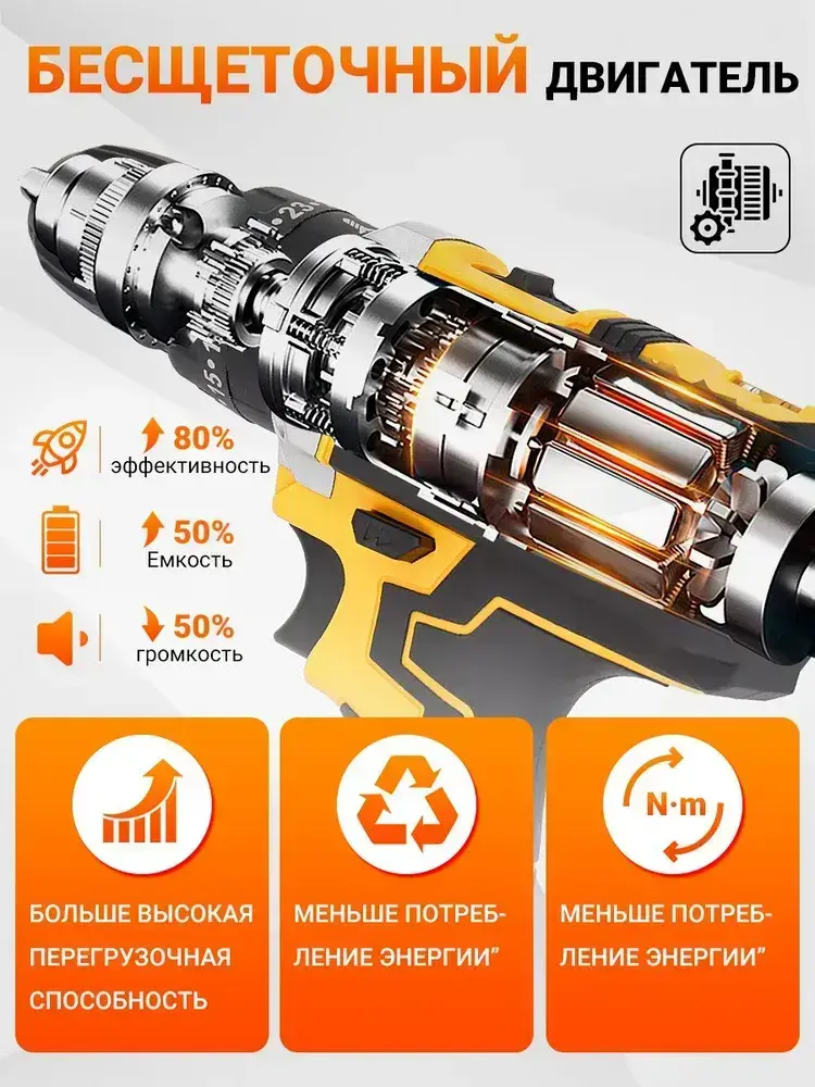 Дрель шуруповерт аккумуляторный набор электроинструментов аккумуляторных кейс 24 В 25 скоростей реверс 2 АКБ