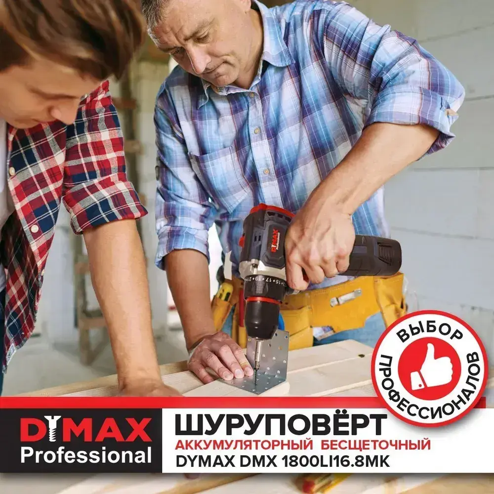 Дрель-шуруповерт аккумуляторный шуруповерт бесщеточный 1 АКБ короб, 55 Н.м, DYMAX DMX 1800BL16.8