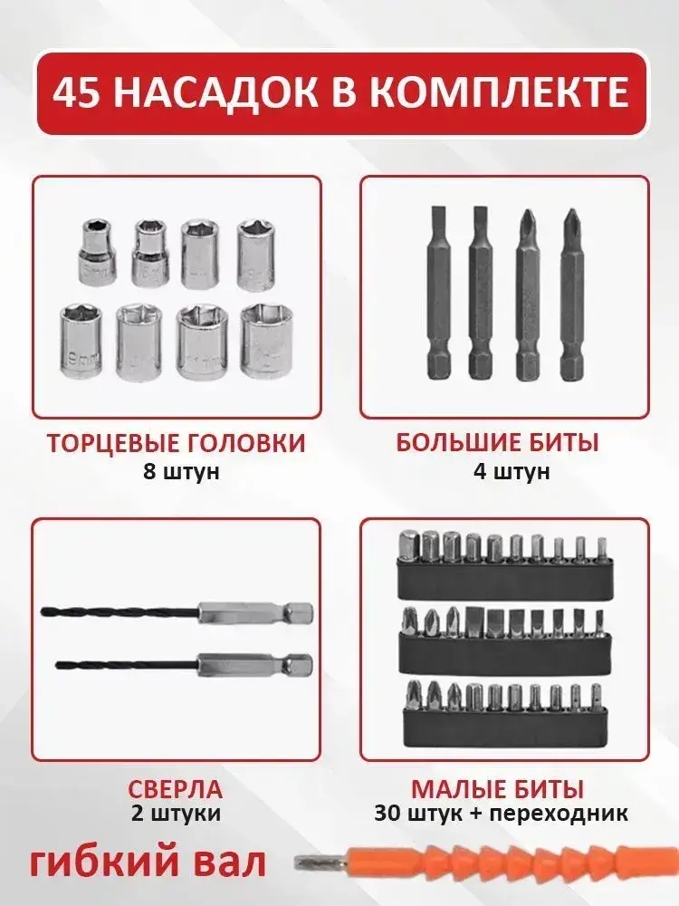 Дрель-шуруповерт аккумуляторный/набор инструментов аккумуляторный