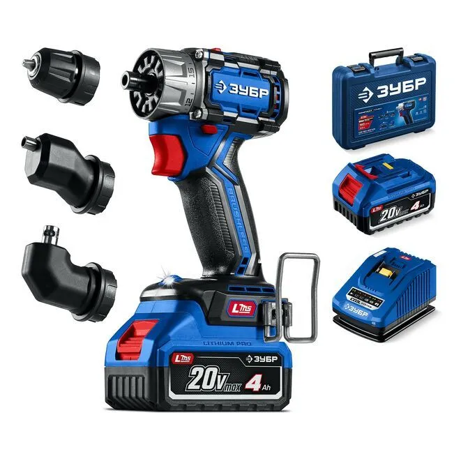 Дрель-шуруповерт бесщеточная, Профессионал, кейс, ЗУБР КОМПАКТ Комби, 20 В, 50 Нм, 2 АКБ (2 Ач)