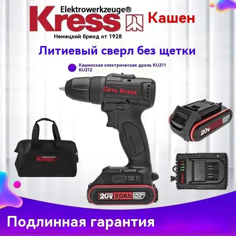 Дрель-шуруповерт Kress KU212,аккумуляторная, 2.0Ah аккумуляторы*2+зарядное устройство