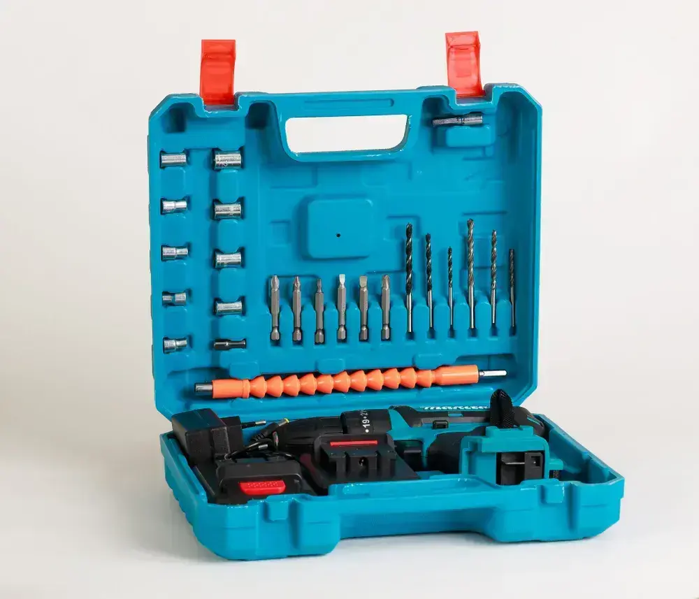 Дрель-Шуруповерт Makita Шуруповерт аккумуляторный 21V, аккумуляторный, Макита 21В, 2 АКБ / Кейс с набором бит, свёрел и головок / шуруповерт для сверления и закручивания
