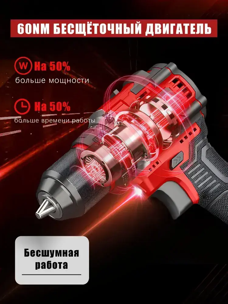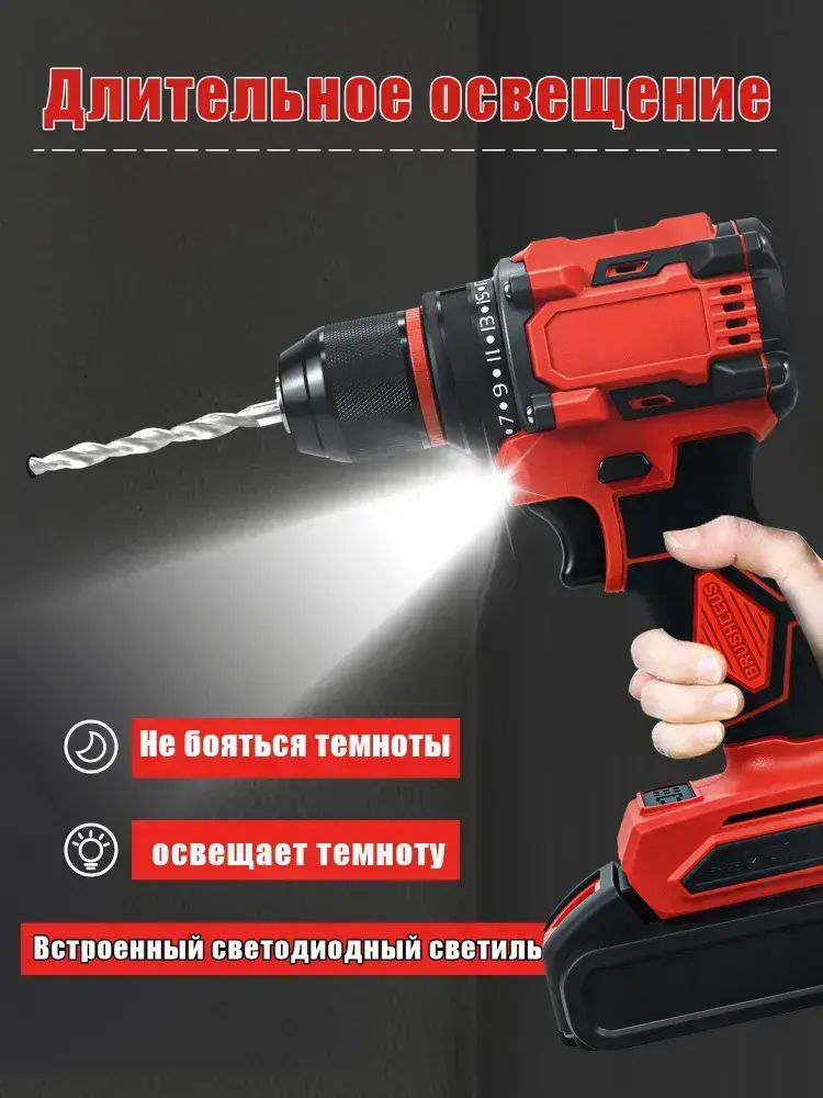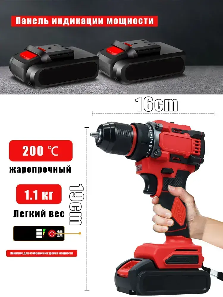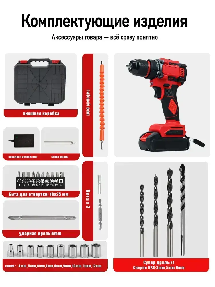 Дрель-шуруповерт, От аккумулятора, 24 В, 60 Нм, 2 АКБ, 28 насадок + кейс! (Ударная, LED)