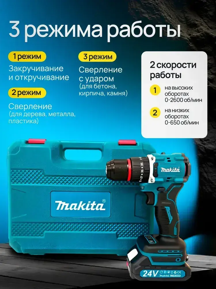 Дрель-шуруповерт, шуруповерт аккумуляторный, дрель-шуруповерт аккумуляторный ударный в кейсе