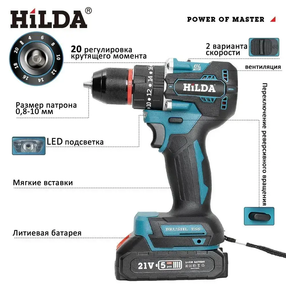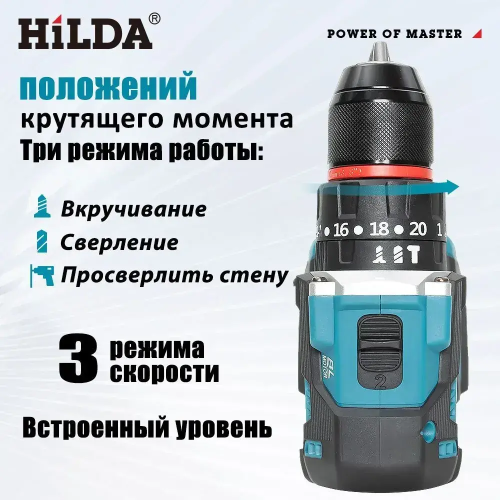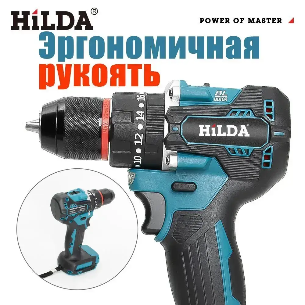 Дрель-шуруповерт,дрель шуруповерт Aккумуляторная,Бесщеточный (Батарея в комплект не входит)