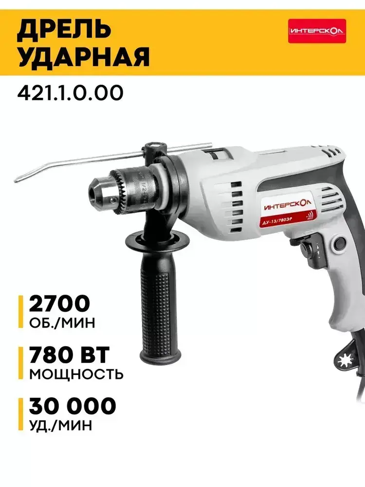 Дрель ударная ИНТЕРСКОЛ ДУ-13/780ЭР