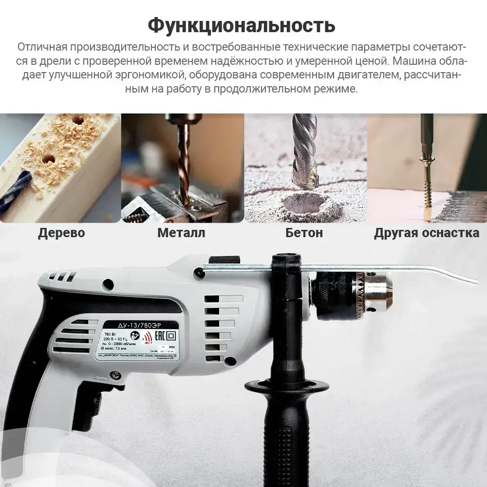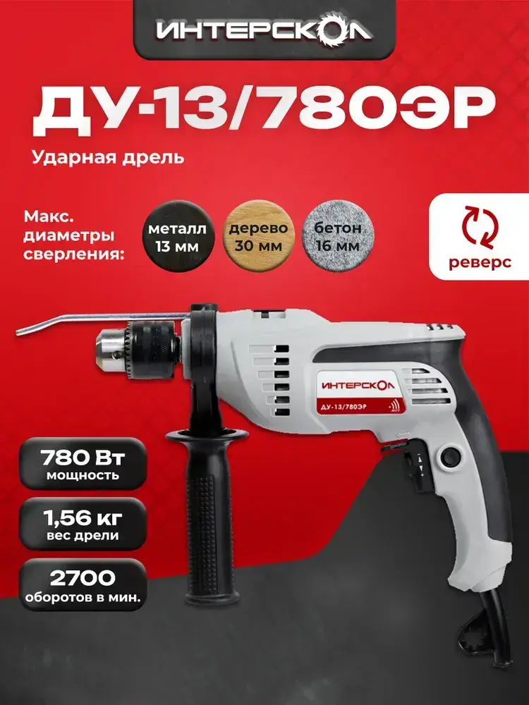 Дрель ударная ИНТЕРСКОЛ ДУ-13/780ЭР 421.1.0.00