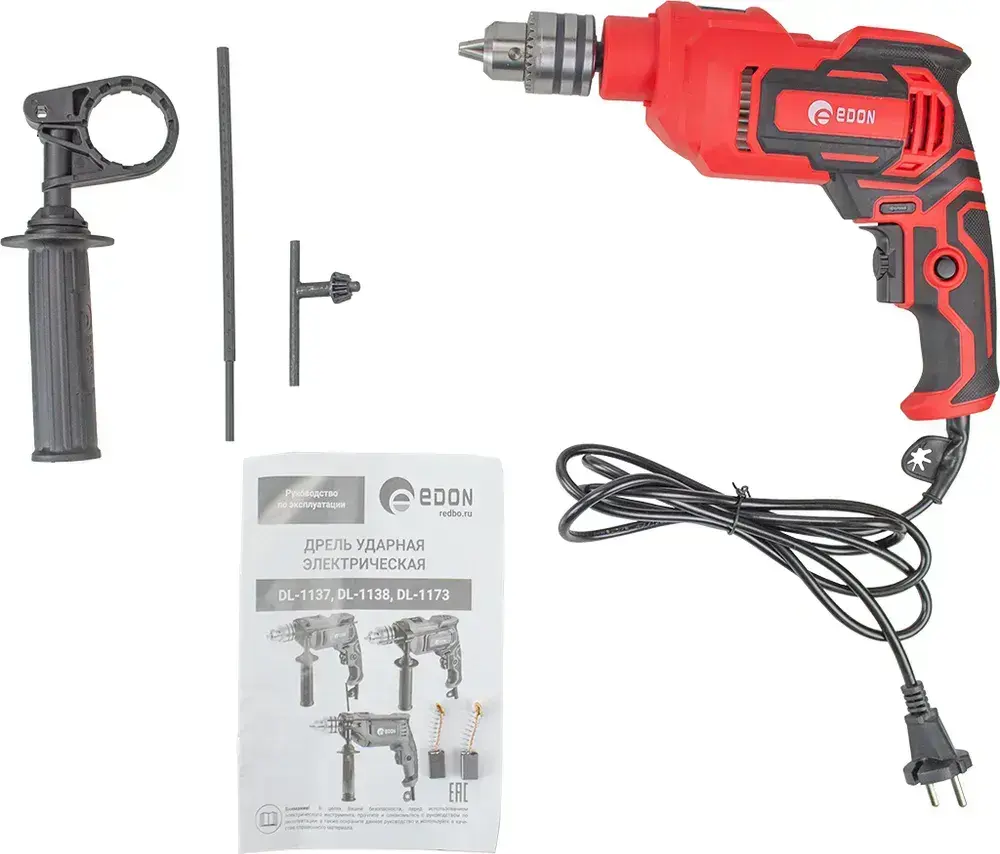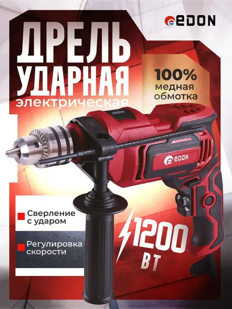 Дрель ударная сетевая 1200 Вт с ключевым патроном, регулировка оборотов, реверс