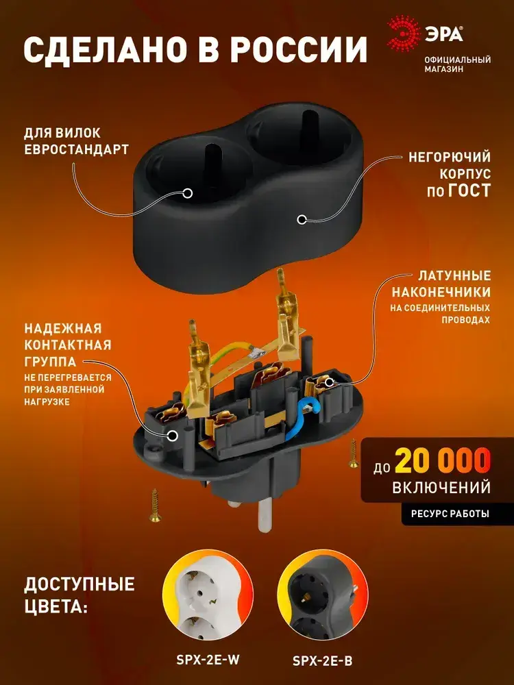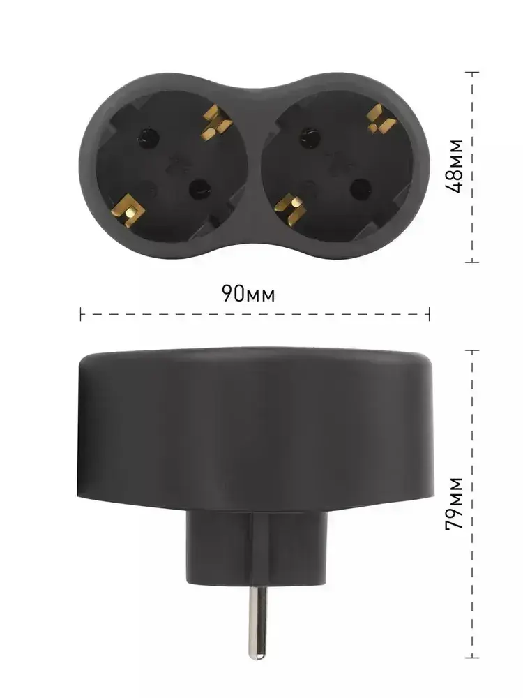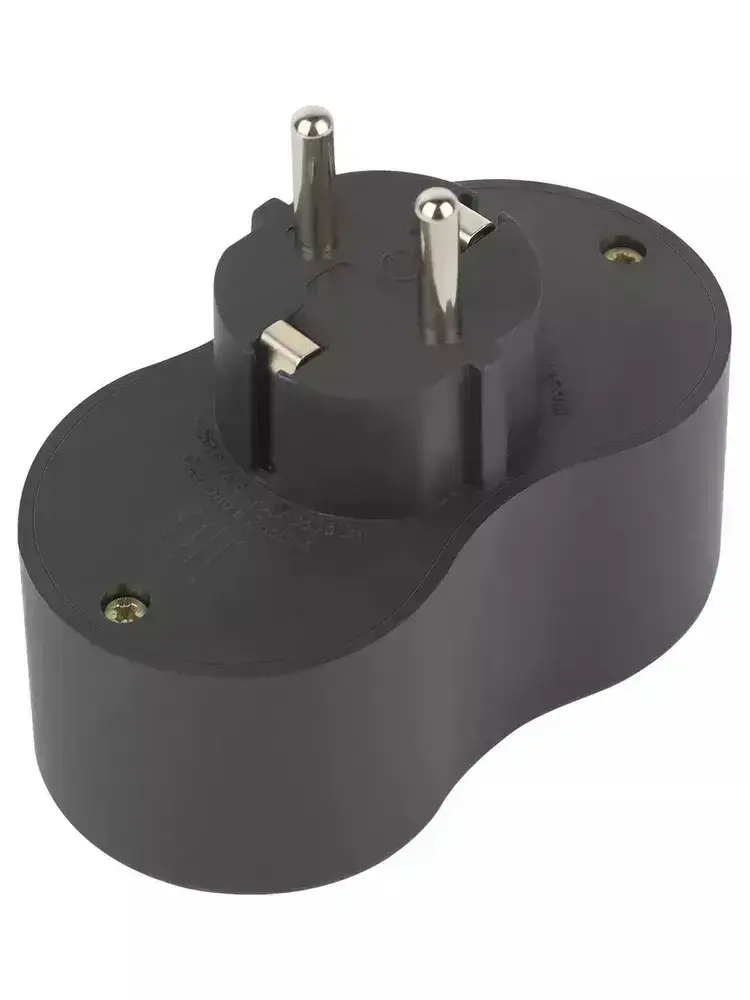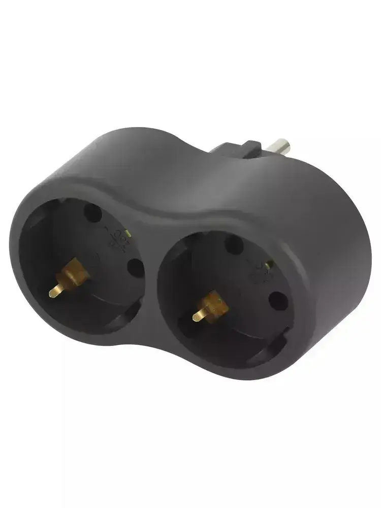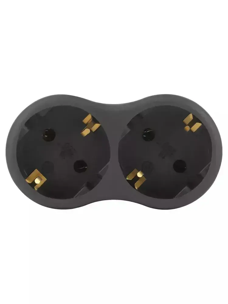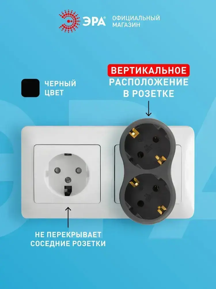 Двойник для розетки электрический ЭРА SPx-2e-B с заземлением, 16А, черный / Разветвитель электрический 2 розетки, тройник