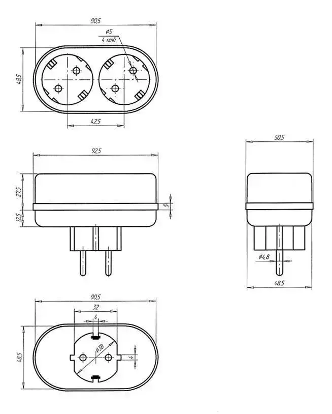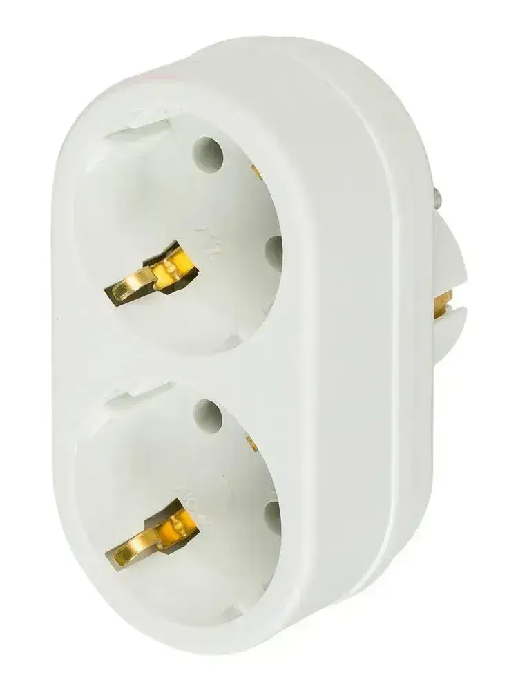 Двойник, разветвитель сетевой с заземлением TOKER 2T2, белый