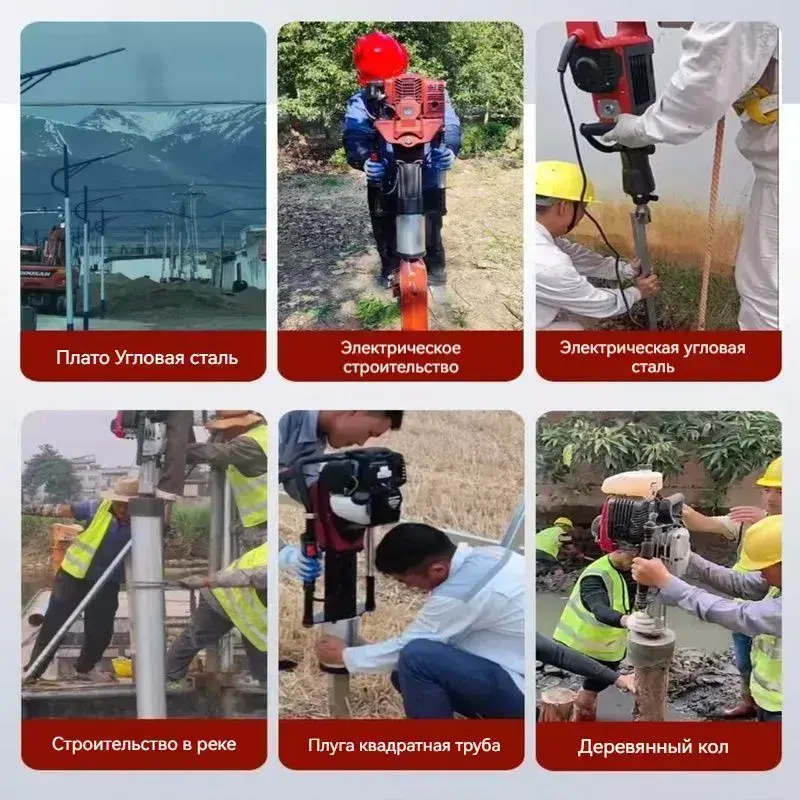 Двухтактный бензиновый буровой станок для забивки свай модели Lanmo 52, 1900 Вт/6500 об/мин, с 85 встроенными втулками
