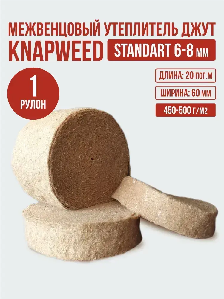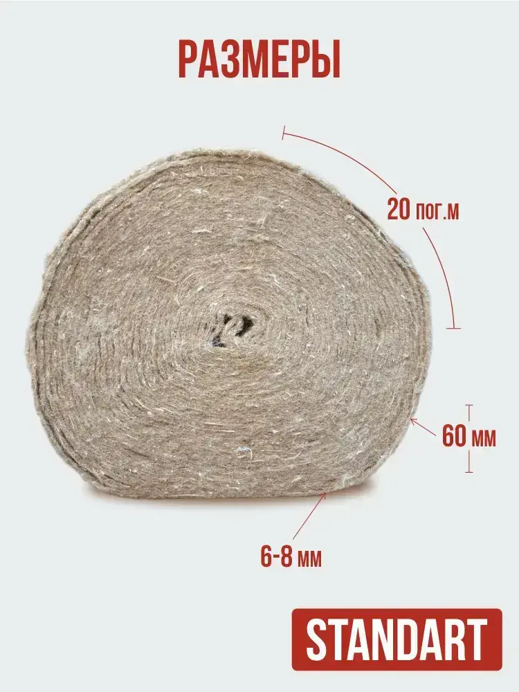Джут 60 мм 6-8 мм 20 пог.м / 1 шт утеплитель межвенцовый для бруса
