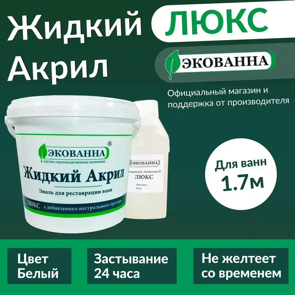 Экованна Жидкий акрил для ванн, Эпоксидная, Глянцевое покрытие, 3.4 л, 3.4 кг, белый