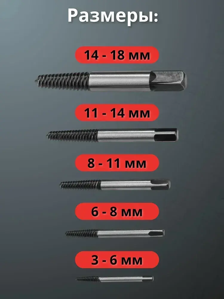 Экстрактор для болтов, в пластиковом кейсе 5 штук