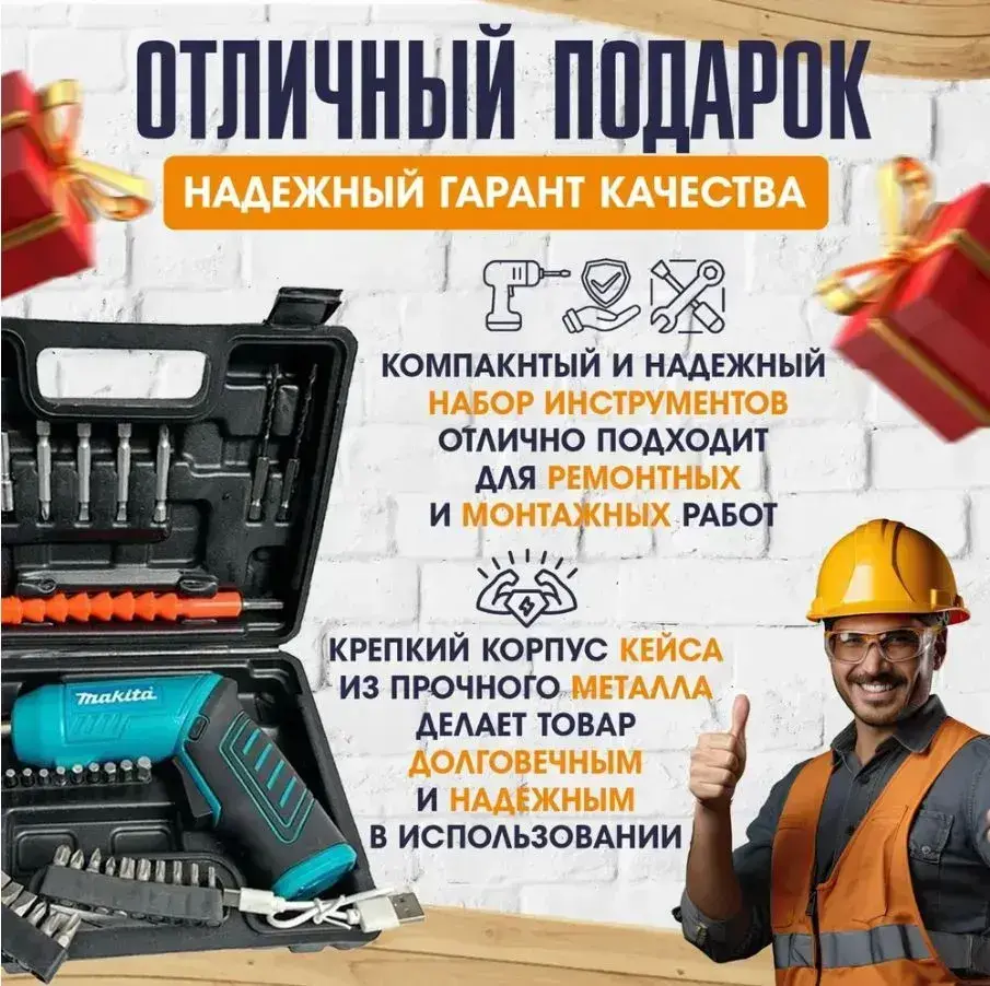 Электрическая аккумуляторная отвертка Макита / Портативный мини шуруповерт набор