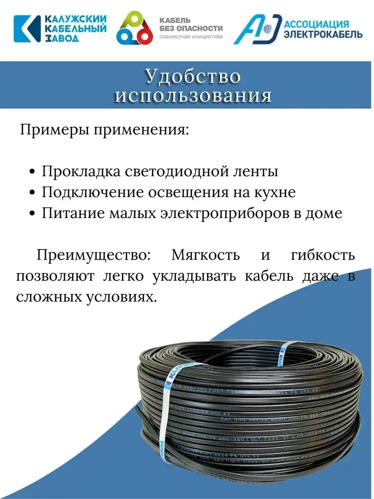 Электрический провод ШВВП 2х0,75 мм, ККЗ, ГОСТ, черный 50 метров