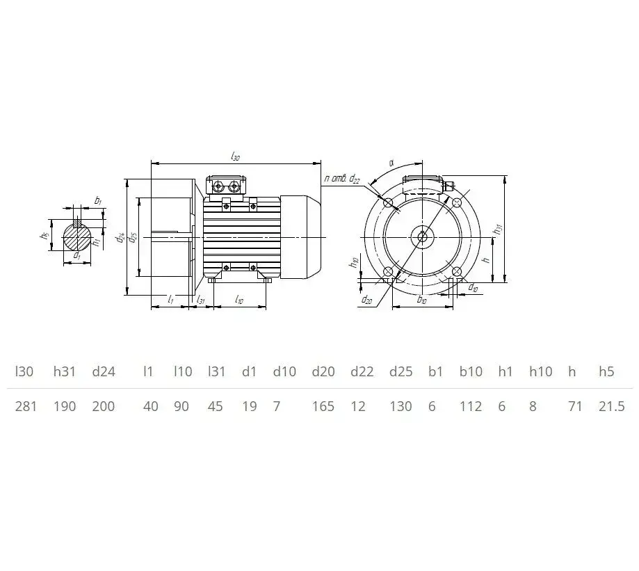 Электродвигатель трехфазный 5АИ 71 В2 IM 2081 1.1 кВт 3000 об/мин