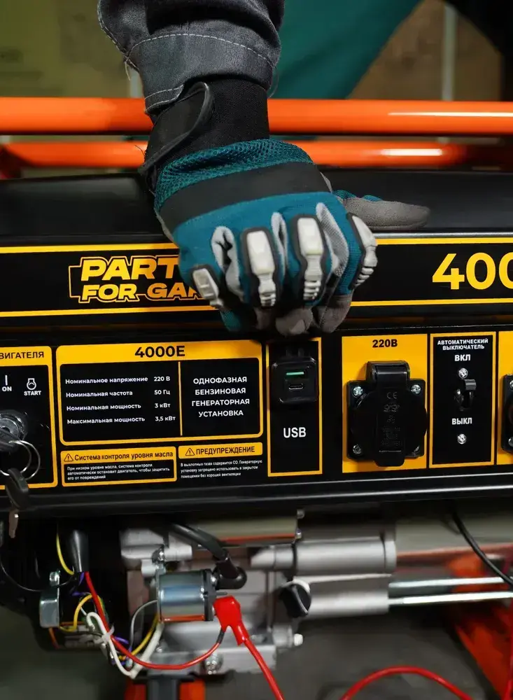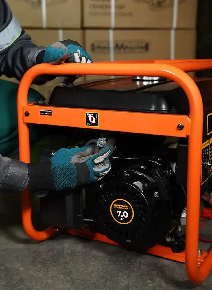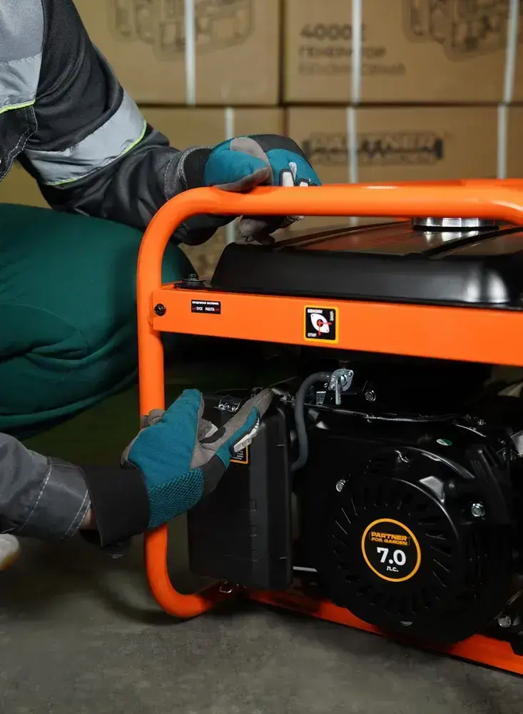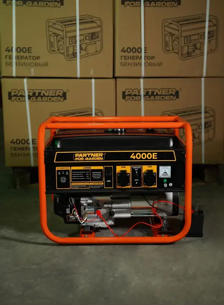 Электрогенератор бензиновый PARTNER FOR GARDEN 4000 Е (4.875 кВа полная мощность, 220 В / 12 В, 3/3.5 кВт, 50 Гц, 7 л.с, ЭЛЕКТРОСТАРТЕР + АКБ)
