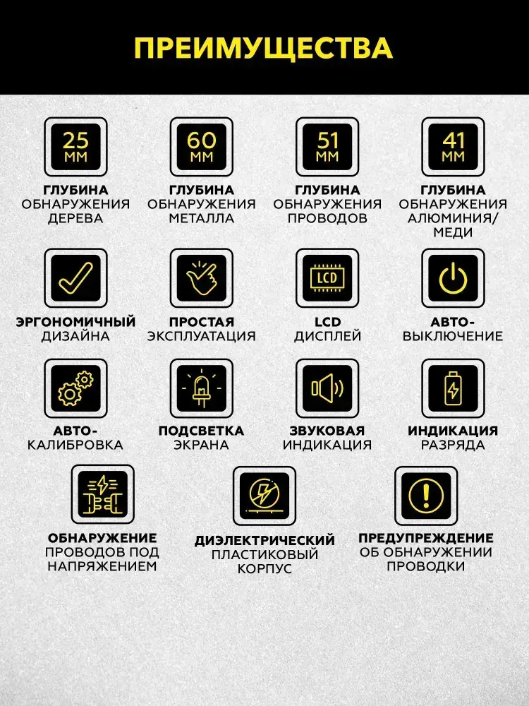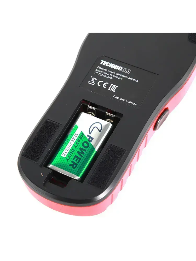 Электронный детектор дерева, металла и электропроводки TECHNICOM TC-ED101MW, 1х9В, 25-60мм глубина обнаружения