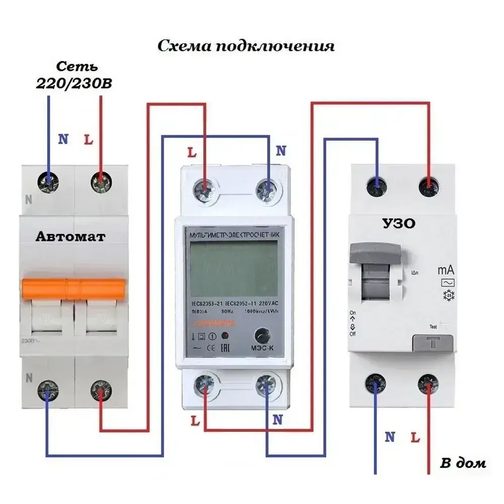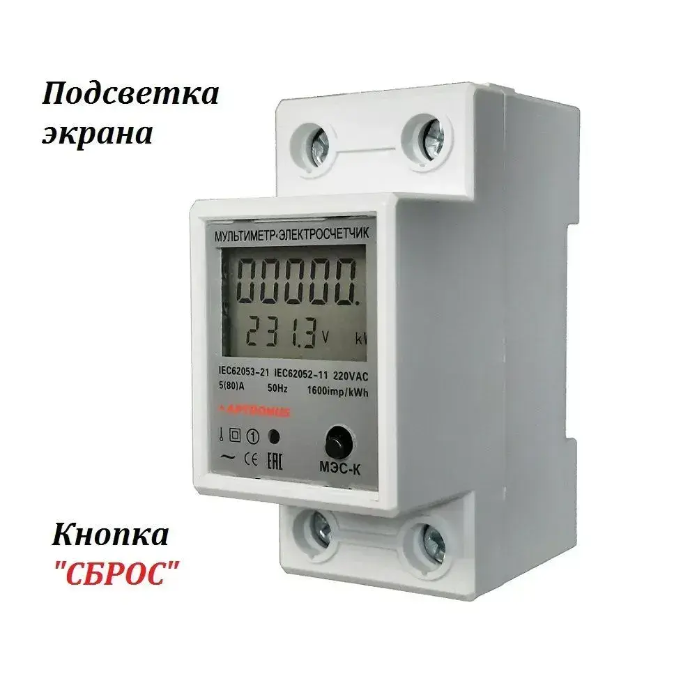 Электронный счетчик электроэнергии однофазный МЭС-К, APTRONUS, вольтметр, амперметр, ваттметр