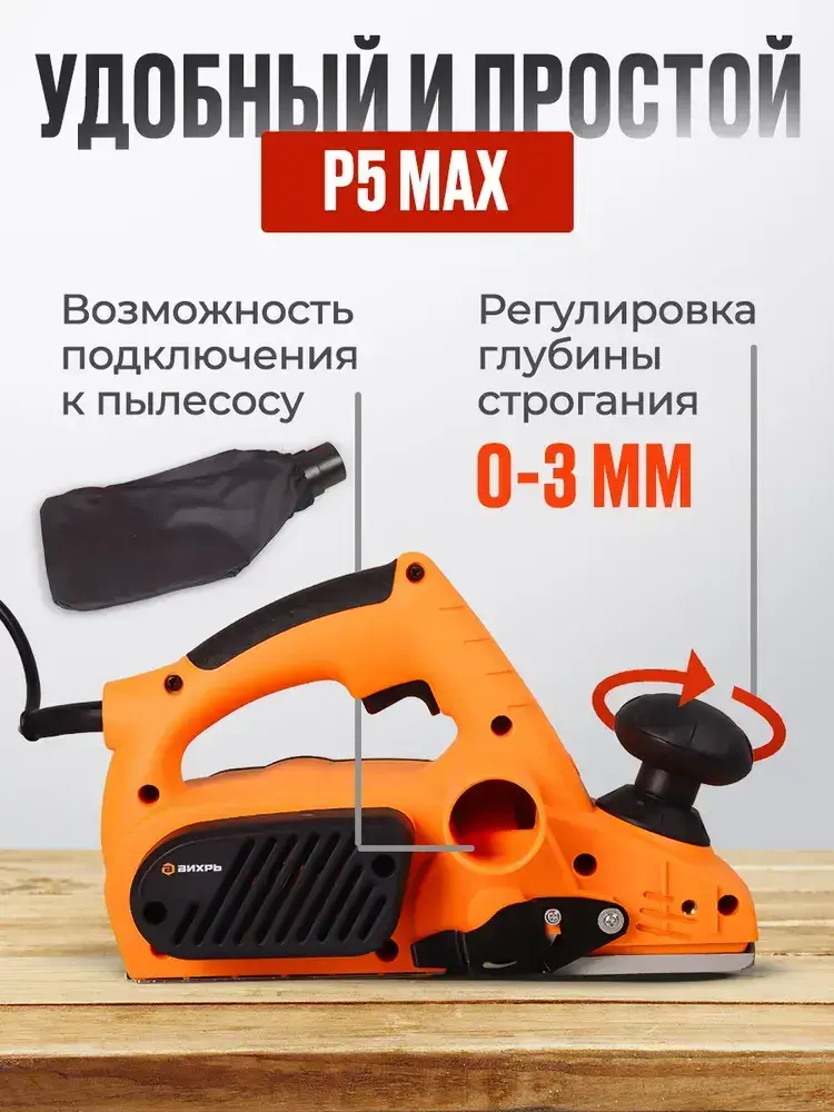 Электрорубанок по дереву Вихрь, 1100 Вт (16000 об/мин, ширина-82 мм, глубина - 3 мм) Р5 MAX/ Рубанок электрический по дереву