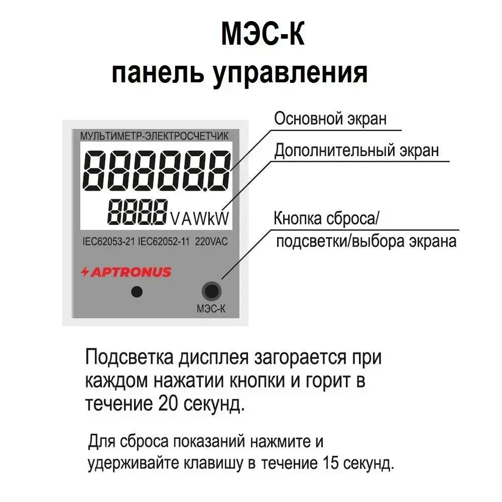 Электросчетчик-мультиметр, амперметр, вольтметр, ваттметр МЭС-К APTRONUS