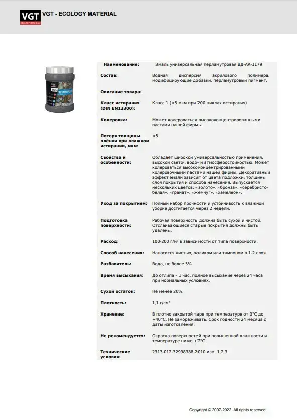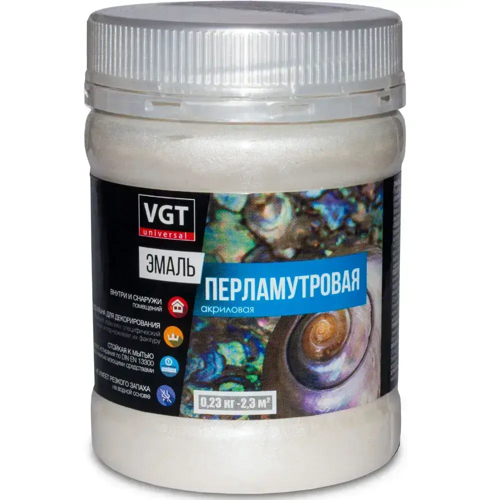 Эмаль декоративная перламутровая VGT ВД-АК-1179, полуглянцевая, полупрозрачная, серебристо-белая 230г