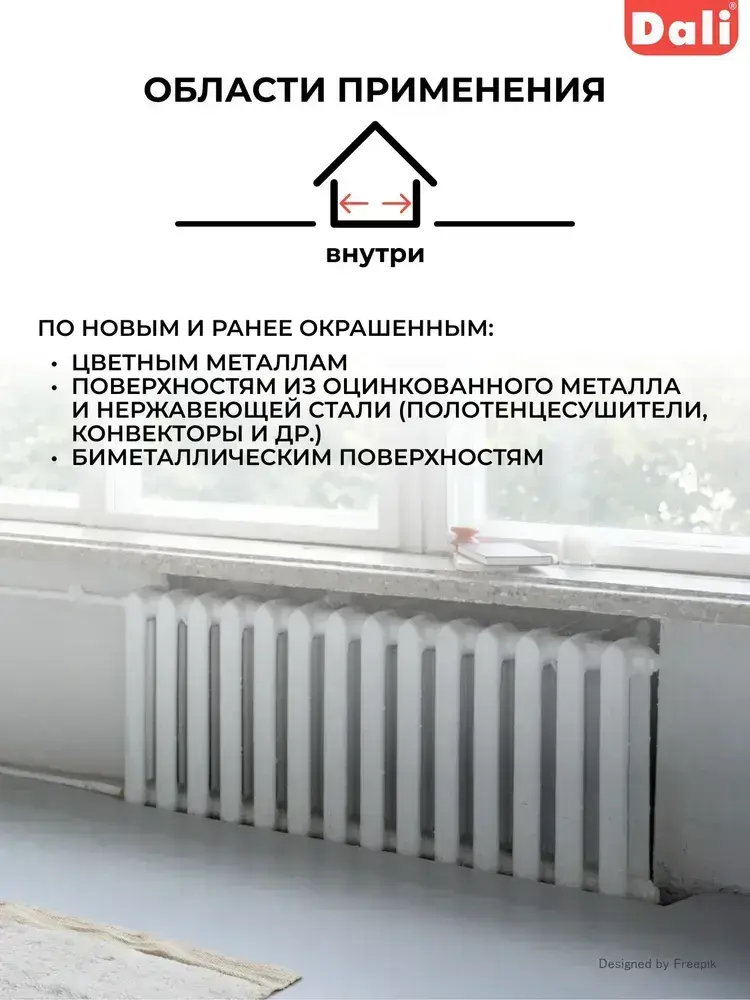 Эмаль для радиаторов Dali, акриловая, шелковисто-матовая, белоснежная, 1 кг / Дали эмаль белая для батареи, белая