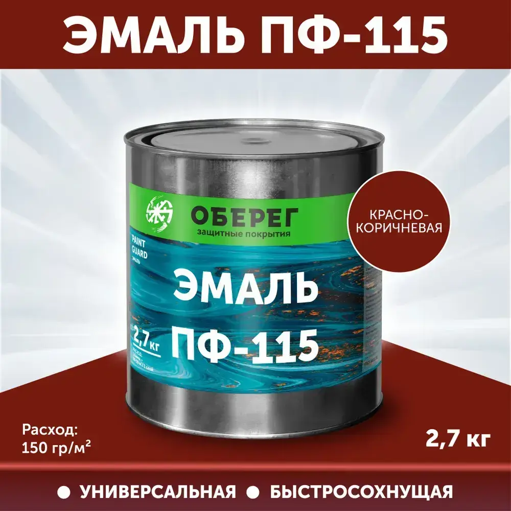 Эмаль ПФ-115 PaintGuard краска алкидная, универсальная, быстросохнущая, цвет Красно-коричневый - 3л/2,7кг