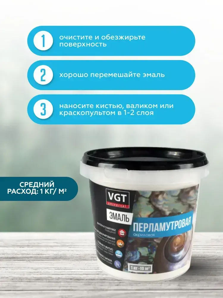 Эмаль универсальная перламутровая VGT / ВГТ ВД-АК-1179, 1 кг серебристо-белая