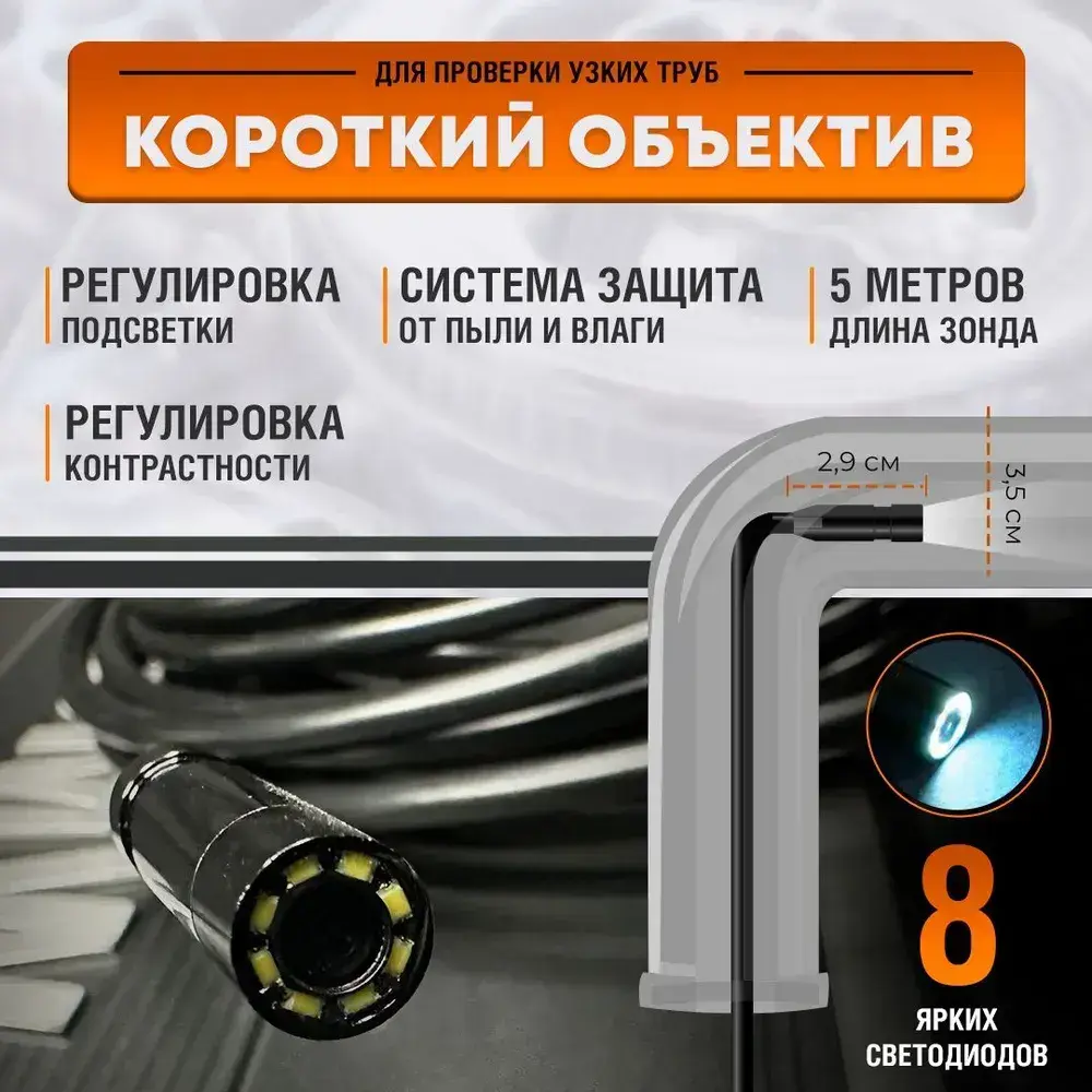 Эндоскоп автомобильный 5 метров с подсветкой водонепроницаемый