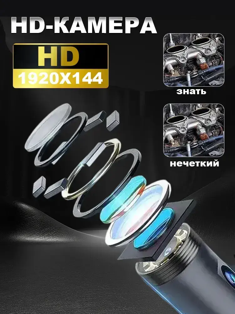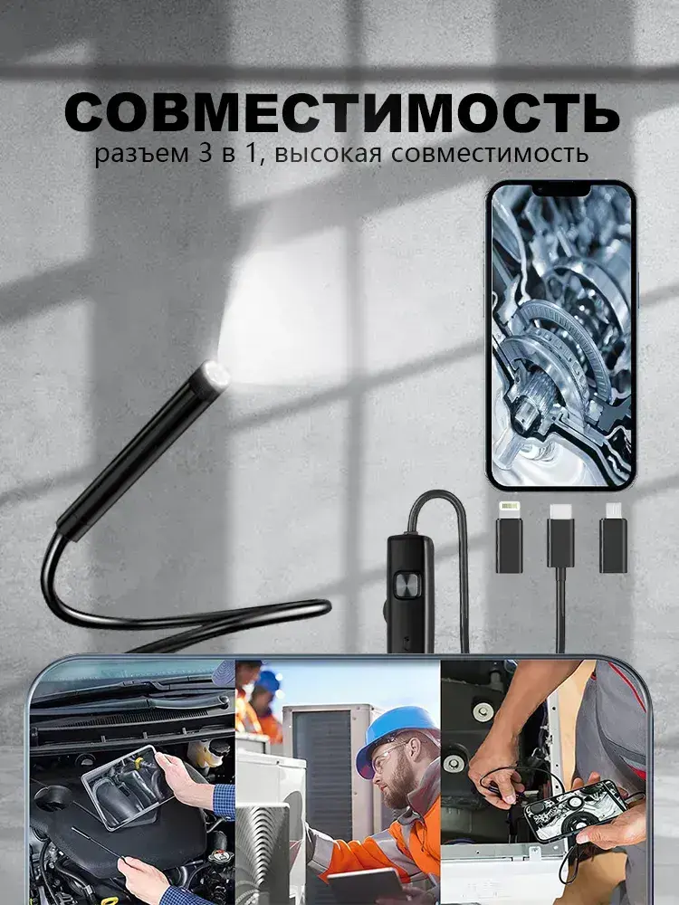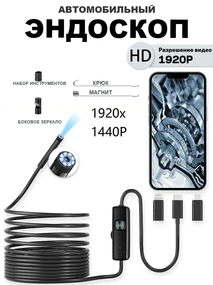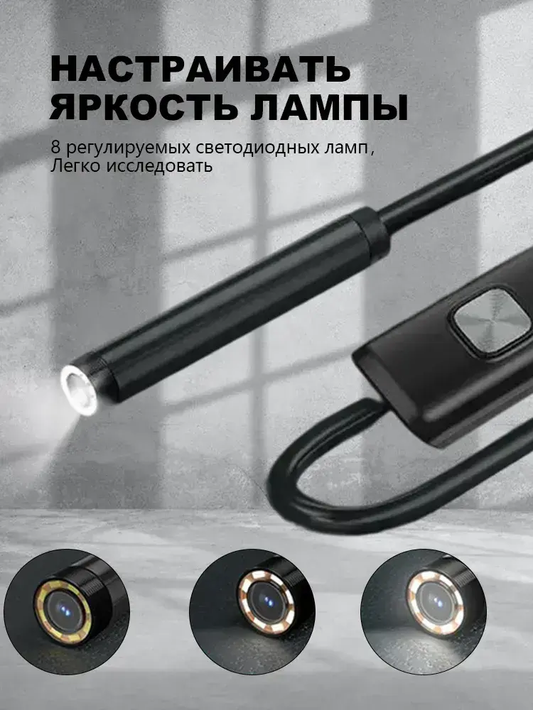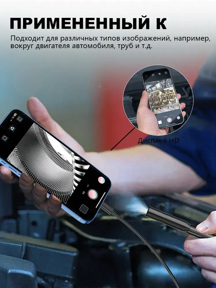 эндоскоп автомобильный, диаметр 7,9 mm,С 8 регулируемыми светодиодными лампами, камера 1920 HD, 2 метра полужёсткого кабеля, подходит для iOS и Android ,эндоскоп для смартфона с подсветкой