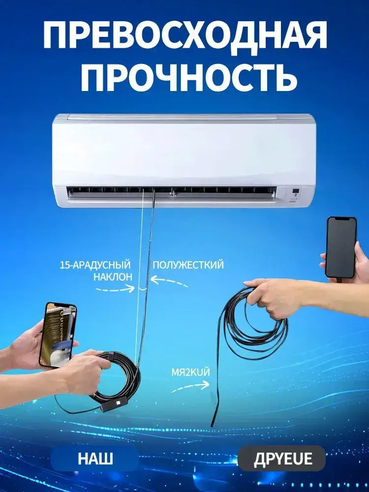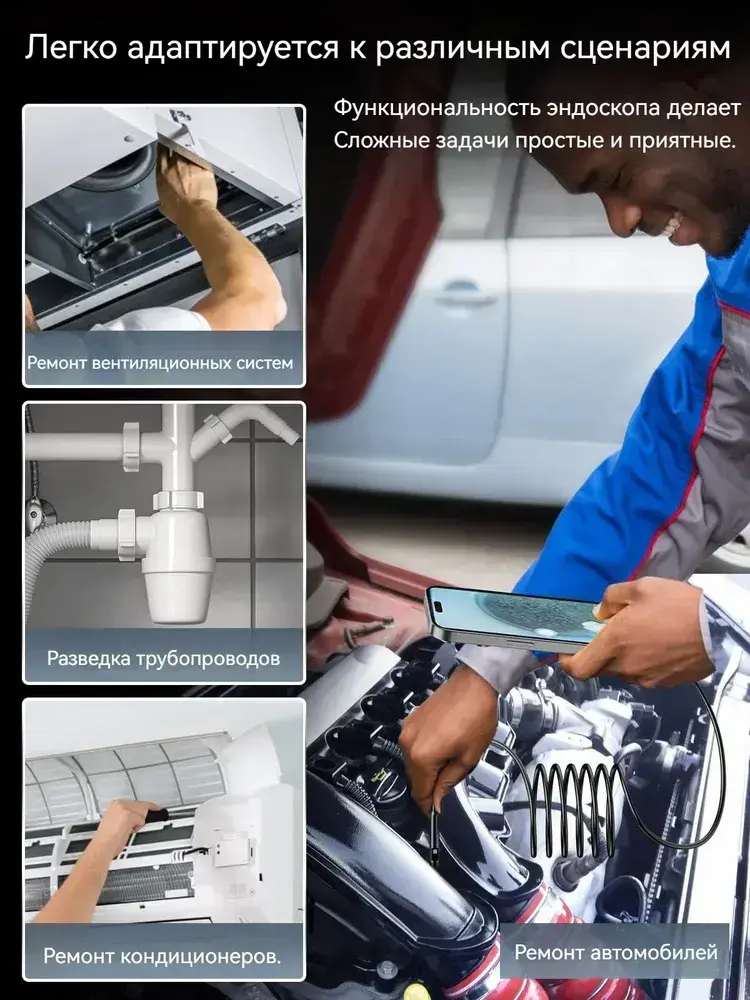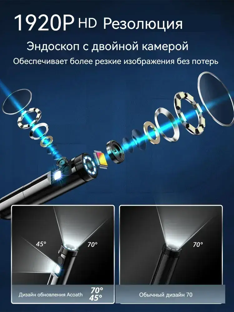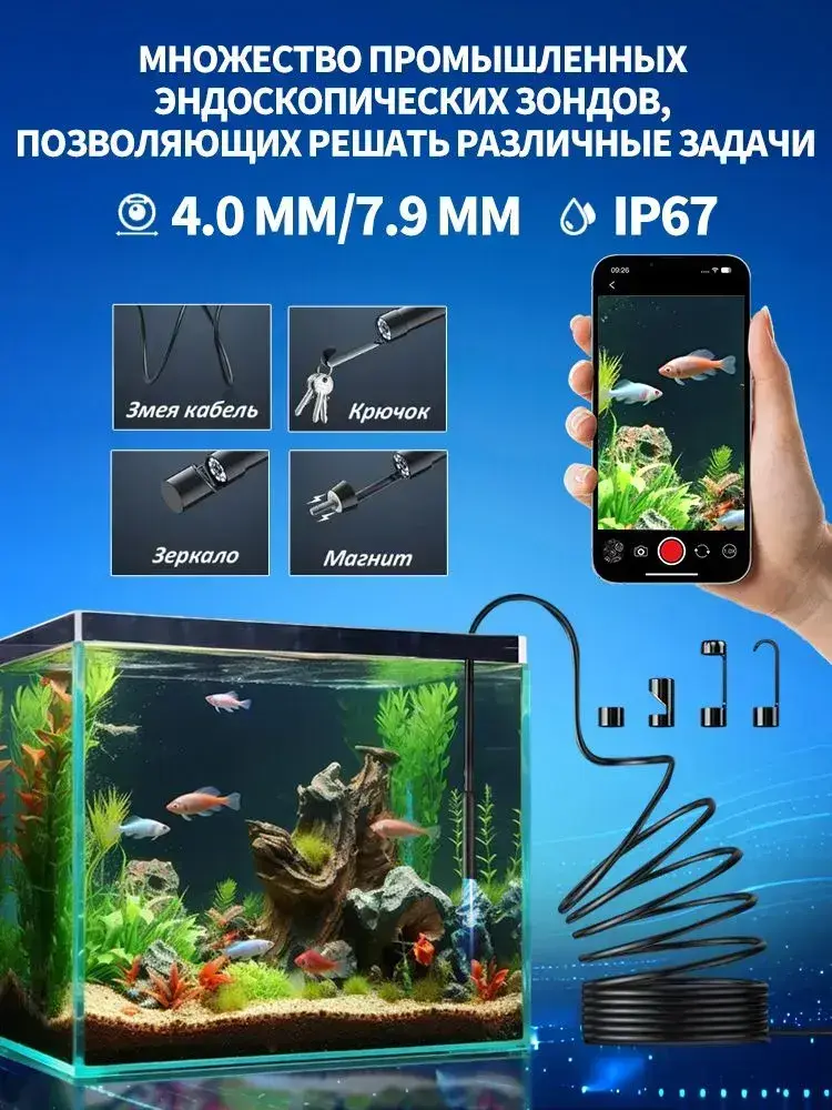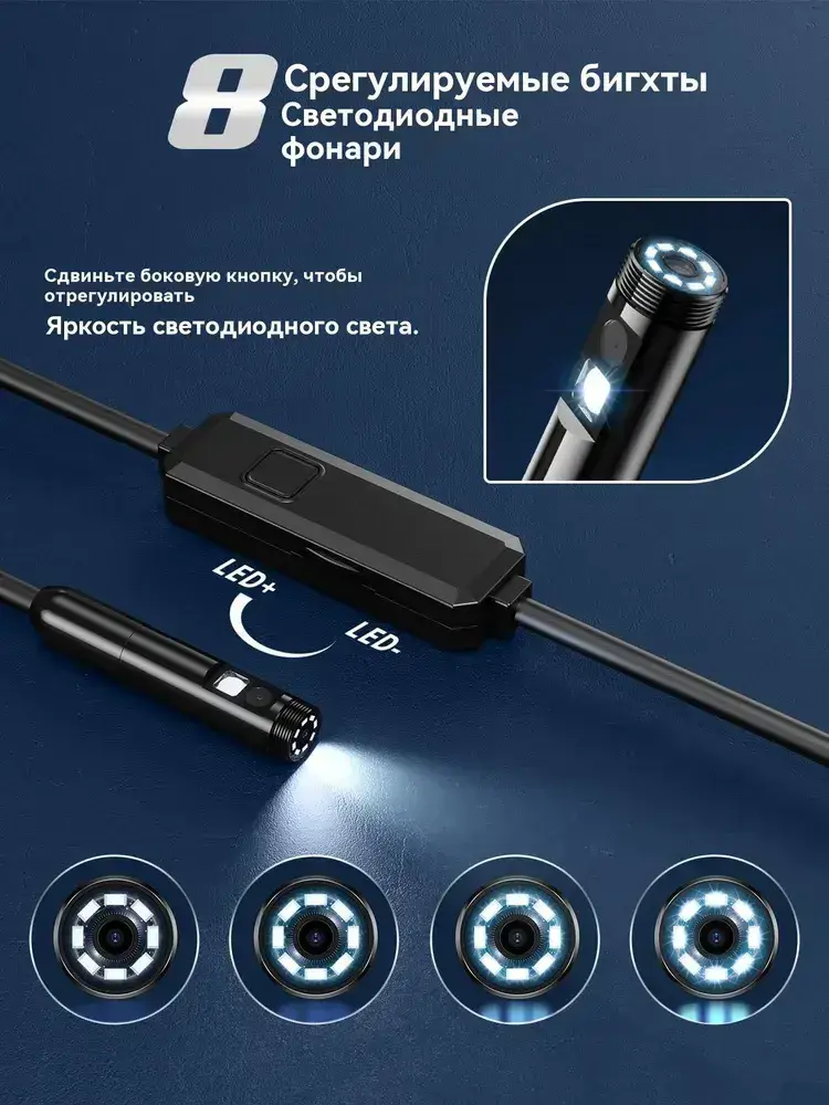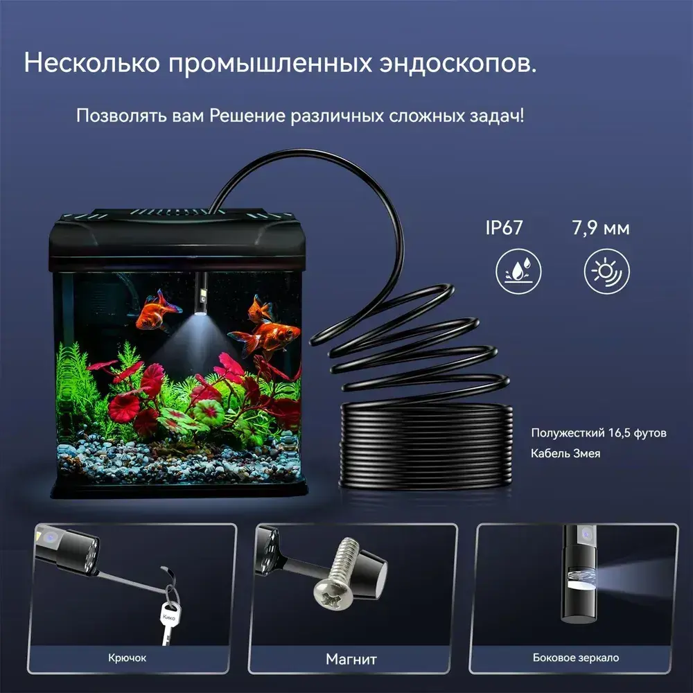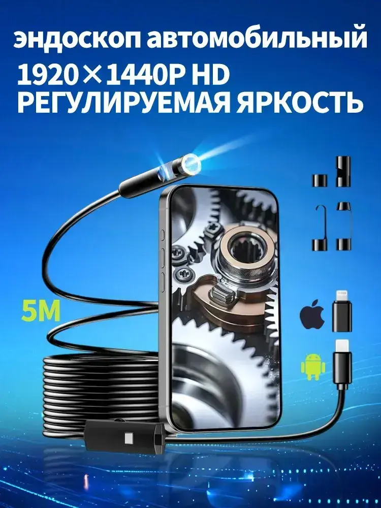 эндоскоп автомобильный, диаметр 7,9 mm,С 8 регулируемыми светодиодными лампами, камера 1920 HD, 5 метра полужёсткого кабеля, подходит для iOS и Android ,эндоскоп для смартфона с подсветкой