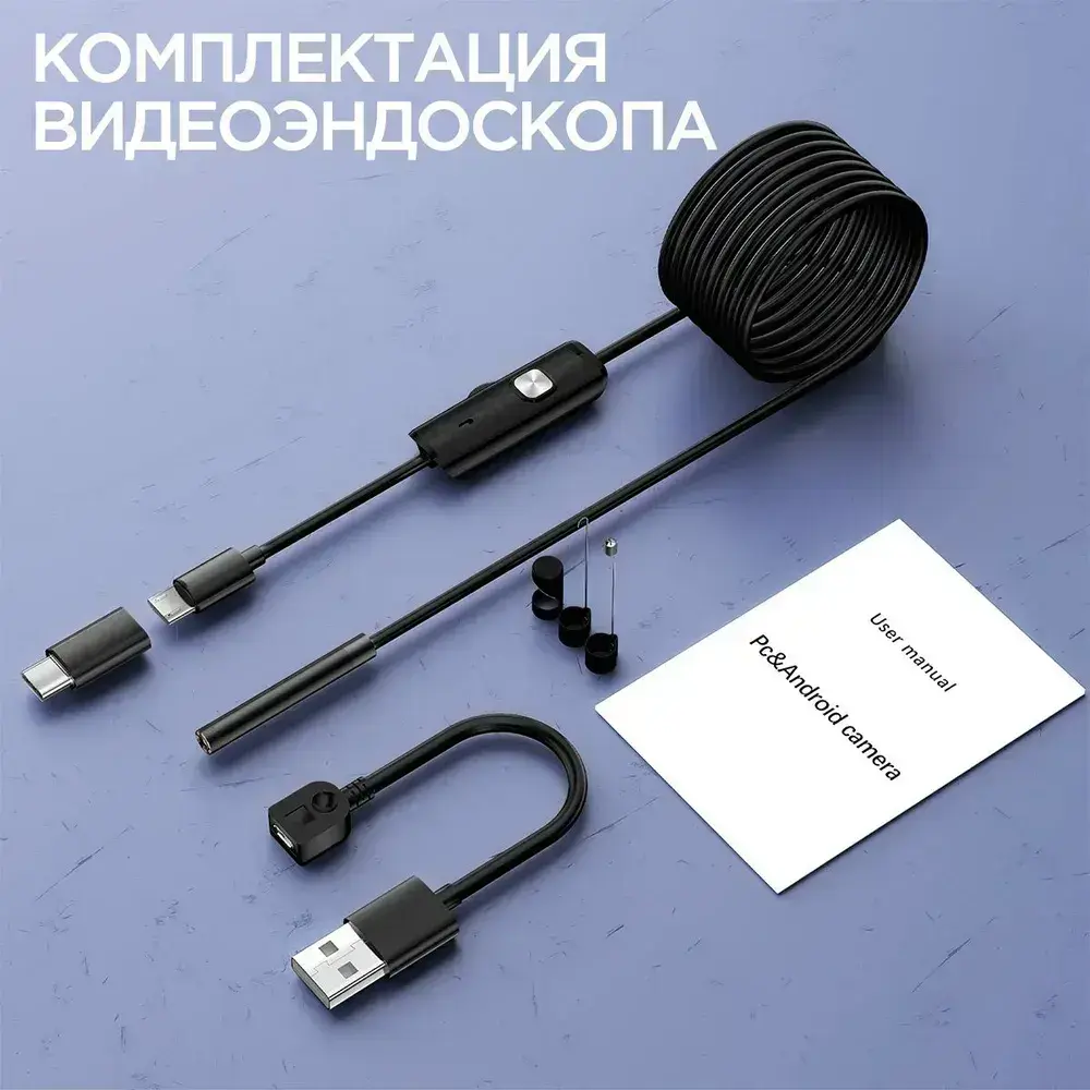Эндоскоп для смартфона автомобильный водонепроницаемый, жесткий провод, 5,5 мм камера, видеокамера с подсветкой USB для смартфона Android, MAC, для PC,Type-C 2 метра